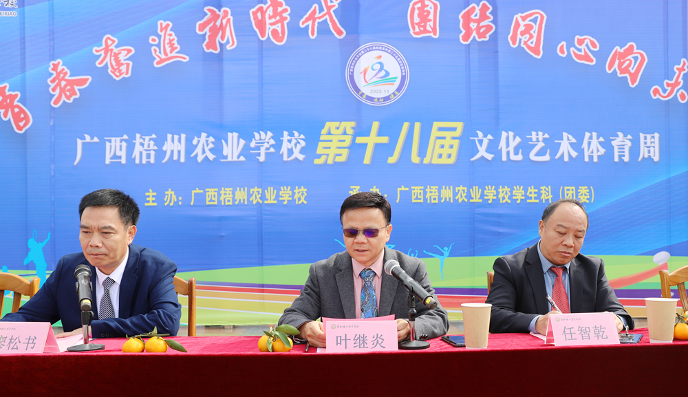 11月11日上午,广西梧州农业学校第十八届文化体育周在校园文化广场正式拉开帷幕。学校党总支书记叶继炎,副书记、校长任智乾,副校长、工会主席廖松书及各科室负责人出席开幕式,与师生共同见证活动启动。