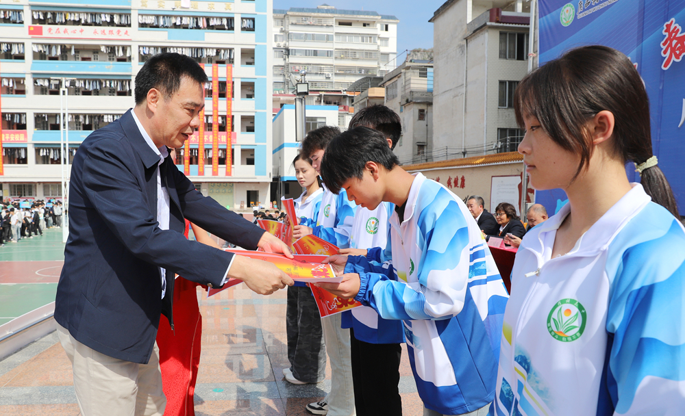 图为学校党总支书记叶继炎为获奖班级颁奖