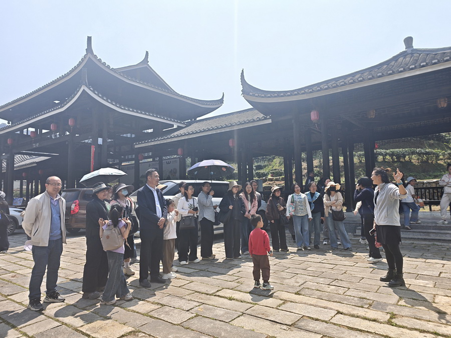 研学实践首站抵达鱼鳞坝,层层叠叠的鱼鳞状坝体间溪水潺潺,教职工们驻足观赏、拍照留念。随后,队伍依次走进苍松茶厂、中国六堡茶第一街,古朴的建筑与浓郁的茶文化氛围相得益彰,大家穿梭其间,感受六堡茶的历史积淀。