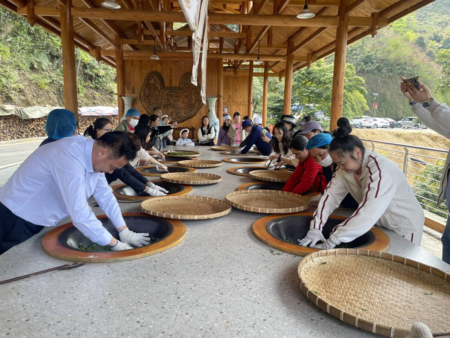午后,研学活动进入职工们最期待的制茶体验环节。走进制茶工坊,教职工们了观摩萎凋、揉捻、发酵、渥堆、干燥等传统制作流程。在制茶师的指导下,教职工们纷纷挽起衣袖,亲手参与简易制茶环节。当嫩绿的茶叶在掌心翻飞,当缕缕茶香在指尖萦绕,大家真切体会到了“一片叶子到一杯茶”的神奇蜕变,更深刻感悟到非遗技艺背后的匠心精神。亲手炒制的茶叶,将成为此行最珍贵的纪念。