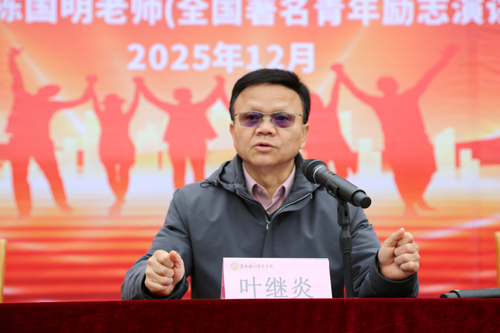 12月4日,我校在文化广场举行以“激情点燃希望,拼搏成就未来”为主题的高考励志演讲活动。全国著名青年励志演讲家陈国明老师受邀到场,为备战2026年高考的学子带来了一场充满激情与力量的演讲。