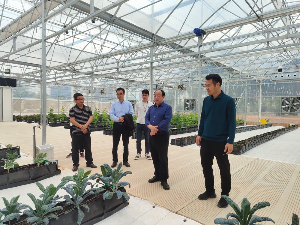 交流活动的第二站,团队前往广西壮族自治区农业科学院,在吴永升博士全程陪同下,大家参观了智慧农业示范基地,吴永升博士详细介绍了基地内智慧温室、水肥一体化、物联网监测等设施的使用情况,以及精准栽培、土壤监测等生产技术,还有花卉、果蔬等作物的种植情况和技术等。