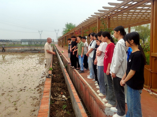 同学们撸起裤脚、踏入水田,分组开展整田、插秧、挖沟、放苗、水质检测等实操训练,认真记录技术要点,在实践中熟悉稻渔综合种养全流程。大家分工协作、干劲十足,将课堂知识转化为动手能力,在劳动中感受现代农业的绿色高效与乡村振兴的时代脉搏。