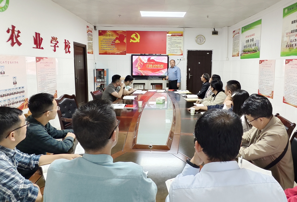 图为学校党总支副书记、校长任智乾为生态党支部党员上“树立和践行正确政绩观”专题党课