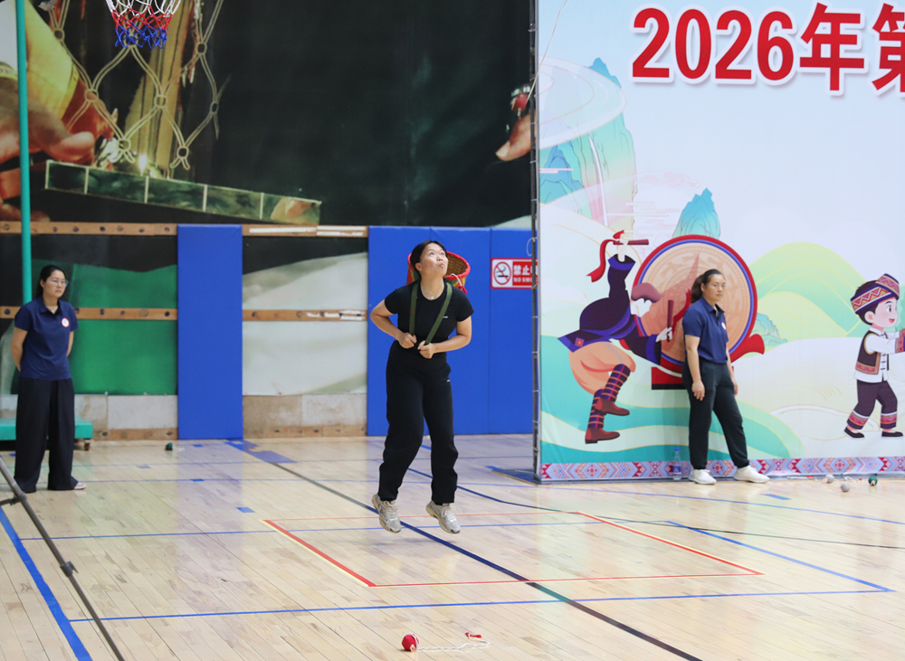 图为我校参赛队员参加背篓绣球比赛