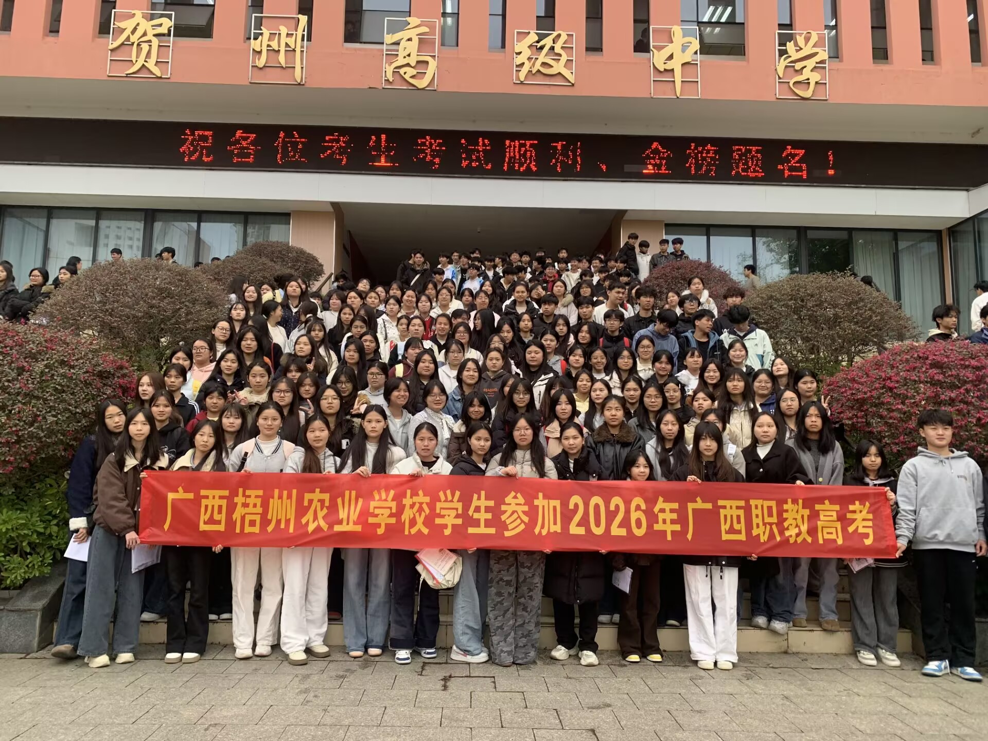 参加职教高考的同学们合影