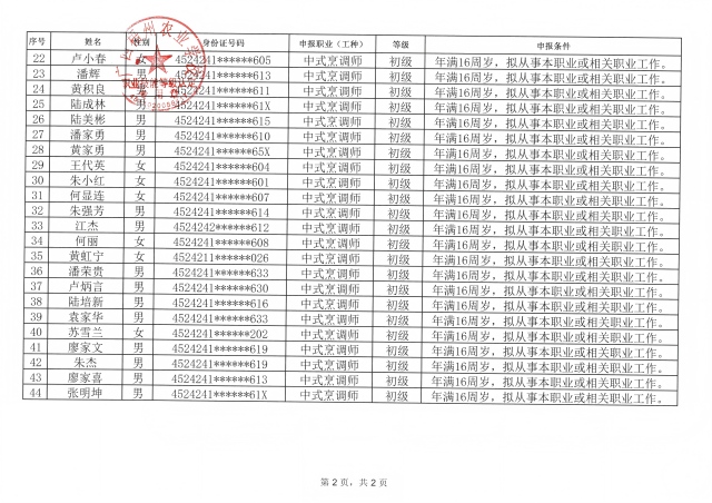 广西梧州农业学校职业技能等级认定资格审核拟通过人员名单公示