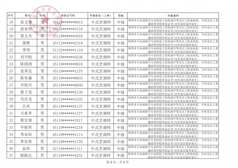 广西梧州农业学校职业技能等级认定资格审核拟通过人员名单公示